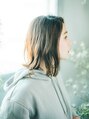鎖骨あたりで少し前下がりになるようにカットしたナチュラルなミディアムスタイル。太めのコテでゆるーいウェーブになるように軽くアトをつけています。毛先を外ハネにすることでカジュアルめな今っぽいスタイルに仕上がります。