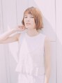 明るめベージュカラーの無造作ロブ☆くせ毛風なくしゅっとスタイリングでエフォートレスなスタイルに。短めシースルーバングでオシャレ感もアップ!!