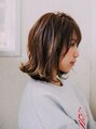 重たすぎず軽すぎず、動きがあるロブ スタイルです。カラーはアッシュベージュカラーにハイライトが入っています。前髪は目上ギリギリで目力効果です◎