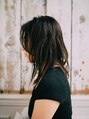 ウエットスタイルのミディアムスタイルです。顔まわりにレイヤーを入れて動きをだし、全体的に軽くなるようにカット。暗めなカラーでかっこよさもでてクールなイメージに。