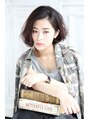 スタイリッシュな印象のナチュラルボブ☆無雑作仕上げ+かきあげた前髪でカッコよく!重さをのこしたベースに、カットで軽さをプラスして動きをプラス!グラデーションカラーで動きを強調させて。