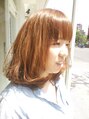モデルさんの雰囲気にぴったりのガーリースタイル。毛先のみ動きがでやすいように軽さをだし、重軽ボブに。カラーは元気いっぱいイエローカッパーで夏を先取 り!!