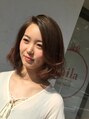 伸ばしかけのボブも毛先のゆる巻きとポイントのハイライトで飽きのこないスタイルに♪ベーシックな赤みを抑えたブラウンに毛先のみピンクのハイライトをグラデーション調に入れているので派手過ぎず大人ガーリーに♪