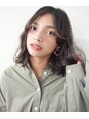 ラフなカールがポイントのミデイアムスタイルです。センターパートで動きをつけておしゃれカジュアルな印象です。