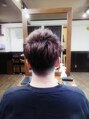 サイドをツーブロックにした爽やかスタイル。くせ毛を活かしてアップバングにすることで清潔感アップ。[西大島/亀戸/江東区/髪質改善/ミネコラ/ケラコラ/イルミナカラー/TOKIO/ヘッドスパ]
