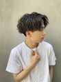 センターパートに強めのツイストスパイラルパーマをかけたスタイル。ツーブロックと襟足部分を刈り上げてあるのでこの夏にピッタリ。セット時間は5分。崩れにくいので朝時間ない方、長時間維持したい方にオススメのスタイルです!