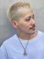 サイドバックはスッキリ刈り上げ、トップは合わせて短くカット。オトコは一度は憧れるおしゃれ金髪坊主。ダブルカラーで軽い印象を与える。スタイリングは基本10秒で終わります!周りと差をつけたい方にオススメです!