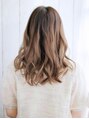 ツヤ感のあるベージュ系カラーにゆるく揺れる様なミックスカールスタイルです☆カールがより透け感を出してくれます♪