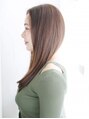 センターパートの前髪に長くすらっと伸びたロングのスタイルです☆ラフに下ろした髪型は作りこまず女性に人気のスタイルです♪
