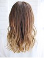 毛先に向かってグラデーションカラーの細かいミックスカールスタイルです☆短いバングが可愛い人気のスタイルです♪