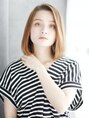 かきあげた前髪につるんと入るボブスタイルです☆まとまりのあるワンカールは扱いやすく女性に人気のスタイルです♪