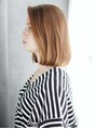 かきあげた前髪につるんと入るボブスタイルです☆まとまりのあるワンカールは扱いやすく女性に人気のスタイルです♪