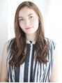 かきあげた前髪の大きなカールのミックススタイルです☆人気のセミウエットの質感は今っぽいのもポイントです♪