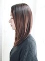 大人っぽい雰囲気のかきあげバングにさらっと落ちるようなストレートスタイルです。まとまりのある毛先が扱いやすく人気のスタイルです。