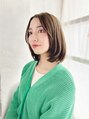 かきあげた前髪に重めのワンカールスタイルです。透明感のあるカラーがスタイル全体に柔らかさを出す扱いやすく女性に人気のスタイルです。