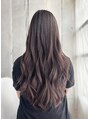 柔らかいモカブラウンのミックスカールスタイルです。下ろし流しの前髪は大人っぽい雰囲気を作り、Aラインのカールは華やかな印象を与えます。