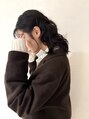 肩ラインのロブのウェーブパーマ大きめカールで少しセミウェットな質感なので秋~冬の時期に合います◎横は軽く止めて前髪も無造作に出すと決まりすぎなく、ワンポイントなおしゃれになります!マフラーやタートルネックの相性もいいです!