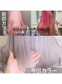 【気に入ったスタイルは『ブックマークする』ボタンを押してご来店時お見せください】ブリーチは二回以上がおすすめ♪1ヶ月前ピンクカラーからパープルホワイトへのビフォーアフター☆褪色の参考に♪/脱白髪染め ホワイトカラー ホワイトブリーチ 派手髪