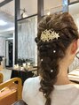 ロングヘアーを生かした編みおろしの華やかなスタイルです。ヘッドアクセをつけてどこから見ても可愛いヘアーが主役なスタイルです。パンツスタイルやサラっとしたドレスにもおススメです!飾りがなくても十分可愛いです!!