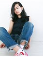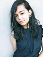 サイドパートの大人カワイイクールなセミロング。フワフワし過ぎないルーズなウェーブが自然でカッコイイ。カラーは自毛に近いダークアッシュブラックで。透け感を出しました。センターパートでもOK。ファッションに合わせやすいスタイルです。大人グラム。