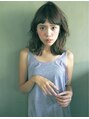 眉上バングの自然なすき間がガーリーな雰囲気に。カラーはアッシュグレーとオリーブベージュ。ルーズなクセ感カールをランダムに加えてラフなヘアに。前髪パーマが子供っぽく魅せない秘訣。ファッションに合わせやすいスタイルでアレンジもしやすい。
