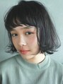 地毛に近い透けるようなダークグレーカラーと前髪パーマをかけた眉上バング、ニュアンスカールが可愛い短めボブ。たっぷり質感カットをしてあるので耳にかけたりお団子したりとアレンジしやすいのがポイント。いろんなファッションに合わせて遊べます!