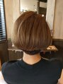 顔周りが短く出過ぎないように少し前下がりのショートボブにして小顔効果をプラス!!首周りはボーイッシュにならないよう刈り上げないくらいにスッキリと。カラーはパーマがなくても動きがあるようにハイライトが入っています。