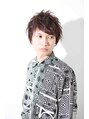 襟足とトップは短め、フロントは長めで動きを出した少しアヴァンギャルドなショートスタイル。ワックスをもみ込むだけで束感も出せる簡単スタイリングです。
