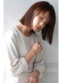 前下がりベースの切りっぱなしボブ。ハンドブローで決まるお手入れ簡単なスタイルです。癖のある方はストレートアイロンでスタイリングするか、しなやかに仕上がる酸性ストレートパーマをかけるのがおすすめです。