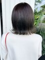 カットは切りっぱなしボブでインナーカラーがブリーチで抜いたところにグレー系のカラーが入っています。【髪質改善/オーガニックカラー/デザインカラー/ハイライト/インナーカラー/白髪ぼかし/ヘッドスパ/トリートメント/縮毛矯正/ヘアセット/カラー】