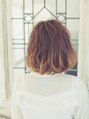 カットは肩につくくらいの長さにカットし、ワンレングスベースで切りました!重たくなりすぎないようにブリーチで色を抜いてオンカラーで明るめのベージュをのせました!毛先ワンカールとトップの毛だけウエーブをつけてふわふわに!