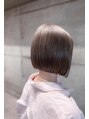 【ミルクティーベージュ × ぱつっとボブ】でクールフェミニンに◎重たい印象になりがちなぱつっとボブですが、透明感のあるミルクティーベージュにすることで重たくならず、おしゃれな雰囲気に。シンプルだからこそ、カラーの透明感が際立ちます。大宮 ボブ