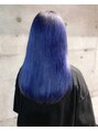 ミディアムローレイヤーベースのカットスタイル。全体を数回(髪の状態による)ブリーチ後にインナーカラー部分をシルバー、表面をブルーにカラーリング。動いた時、アレンジした時に見える2色が可愛い!個性的ミディアムスタイルです。大宮グランアージュ