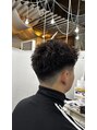 ピンパーマでトップの立ち上がりをプラスサイドとバックはフェードで締めてトップの動きがより強調されています!セットもワックスを揉み込むだけですぐ決まります!