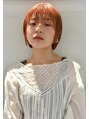 サイドはマッシュラインでレイヤーをたっぷり入れて、バックはパツっと切りっぱなしボブにカット。カラーは、全体ブリーチをした後、ピンクオレンジをオン☆ストレートスタイルに映えるカラーでおしゃれに!!