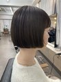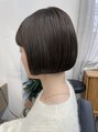 クラシカルでシンプルなミニボブにカットしました☆前髪もぱっつんで少しワイドにしてます。カラーは明るめのオリーブベージュで柔らかい印象に♪【30代40代50代60代ナチュラルボブショートボブオリーブブラウン白髪ぼかしカラー】