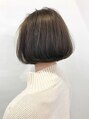ボブ×ヌーディーベージュ!やや前下がりにカット。重めな印象になりがちな、切りっぱなしボブもベージュカラーでふんわり柔らかさアップ♪