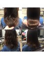 髪質改善5~6回目で到達できる領域。まずはトリートメントで髪を疎水状態へ導き髪の体力をつけてから改善していきます。ストレートで改善するのではなくトリートメントで改善していきます。髪が水分と脂質とタンパク質でもっちりっ!