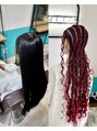 ワインレッドのエクステと一緒に編み込んだスタイル