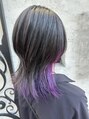 ウルフカット×インナーカラーは定番ですが可愛いですね。今回はブラック×バイオレットでかっこいい仕上がりです☆ブリーチ1回~可能なカラーです。