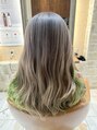 グレージュ×イエローグリーンの組み合わせが柔らかくて可愛いですね。ブリーチ1回~可能なカラーです。退色後はベージュになります。