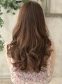 ヌーディーなロングヘアで大人巻き髪、重めバングであまさアップ
