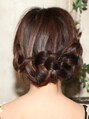 あまり派手にしたくないけど可愛くしたい!そんなオーダーで人気NO1のスタイル。編みこみをラフにして、耳後ろでふんわりラフなカールで可愛くなりたい方は是非!全体に編み込みしてあるので、長時間や、雨の日でもOKスタイル。