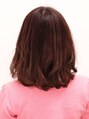 ワンレンベースのローレイヤーで重めにットして、前髪はAKBっぽく重めに下ろし流し。カラーリングは、ピンクブラウンでつやっつやに!!ブローで内巻きに仕上げました。