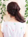 簡単華やかなサイドアップスタイル。長さは鎖骨位ある方は特におすすめです。下ろした時とあげた時の変化を簡単に付けられるし、ちょっとまとめたい時にも華やかで好評いただいています!デートに女子会レジャーなどこれからのシーズン特におすすめです。
