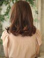 ワンレングスベースでカット。内巻きにキレイに入るようにカットしています。カラーはとても落ち着いた印象を与える8レベルのブラウンベージュに染めています。クセがある方や手触りが気になる方はグロスを。