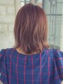 伸ばしかけの方にもおすすめの外ハネミディースタイル☆ ちょうど肩にあたる長さなのでスタイリングも楽にできます!! バングは流し気味で大人っぽく見せました。 カラーリングはピンクバイオレット系でツヤっぽく女性らしく。