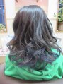 M3Dの薬剤を使いダブルカラーでグラデーションに。ブルーとシルバーを混ぜて個性的に、、☆質感カットで巻き髪をしやすくさせていただきました!