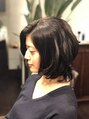 伸びてくるとウネリが出てくるくせ毛を生かして顎下・肩上レングスでまとめました。前髪は作らず、おでこを出して知的な大人の女性に。カラーもダークトーンのグレーとバイオレットアッシュを調合して大人クールな雰囲気に。秋冬にオススメです!!