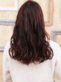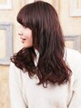 軽くしすぎず、パーマによる動きで軽さと華やかさをプラスしたウェーブ スタイル。 前髪はワンカールで流しメリハリを。 カラーはバイオレットブラウンでツヤを出しました。